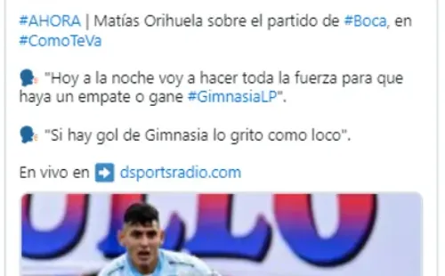 El zurdo, que ayer fue titular en la victoria de su equipo ante Platense, habló en D Sports Radio y fue contundente: “Hoy a la noche voy a hacer toda la fuerza para que haya un empate o gane Gimnasia. Si hay gol de Gimnasia lo grito como loco”.