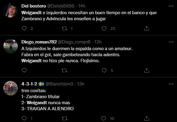 Sin embargo, hubo algunos jugadores que estuvieron mejor que otros. Y es por eso que algunos hinchas se enfocaron en el rendimiento individual de algunos futbolistas. Y hubo uno que fue tendencia entre los comentarios que hubo un Twitter: los fanáticos no lo perdonaron por su desempeño.