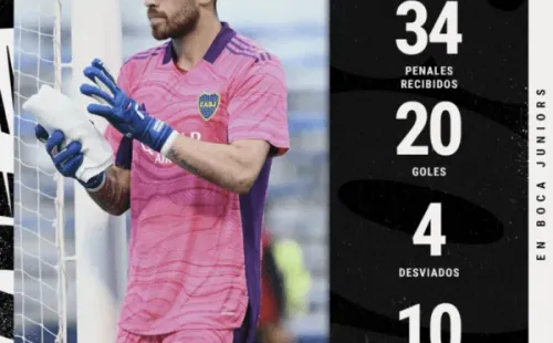 Un experto. No es ningún hallazgo dar cuenta de su capacidad para intuir y detener las ejecuciones recibidas. Si nos limitamos a los que recibió en El Xeneize, esta jornada alcanzó los 10 penales atajados de 34 recibidos. Lo particular es que 4 de ellos fueron directamente desviados por el ejecutante. Es decir, tapó un tercio de los disparos que fueron al arco.