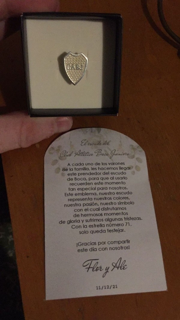 Esta vez, decidió llevar al altar el sentimiento que tiene por Boca. Sus amigos Florencia y Alese casaron el sábado 11 de diciembre y organizaron una fiesta marcada por el fanatismo de ambos por el club: desde las fotos en la previa hasta las invitaciones con un pin de regaloy la posibilidad de celebrar el Día del Hincha después de la medianoche.