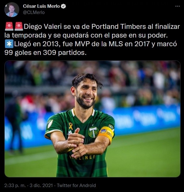Se trata de Diego Valeri, quien explotó en Lanús y tuvo un paso por Porto y Almería, pero que encontró su lugar en el mundo en Portland Timbers de la Major League Soccer de Estados Unidos. Llegó en 2013 y ahora es uno de los ídolos del club norteamericano. Pero en diciembre quedará libre.