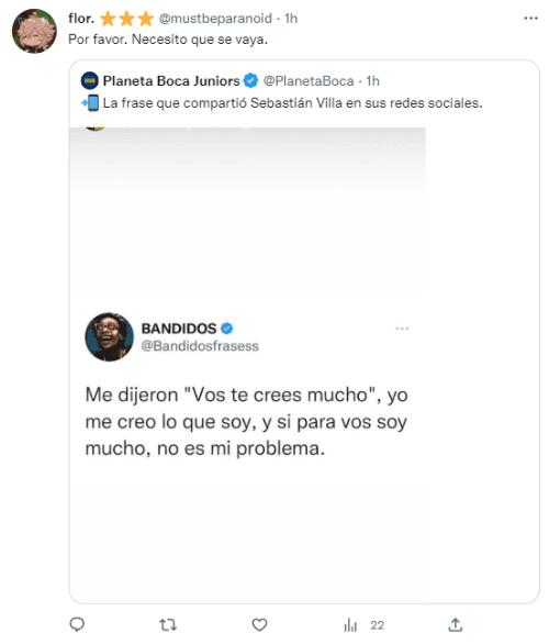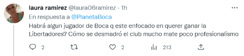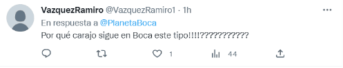 “Mamita… Este dinosaurio también tiene que volar del club, ah pero ‘es el mejor delantero de fútbol argentino'”, escribió enojado un simpatizante. “Habrá algun jugador de Boca q este enfocado en querer ganar la Libertadores? Cómo se desmadró el club mucho mate poco profesionalismo”, reflexionó una hincha. No hay mucha paciencia.