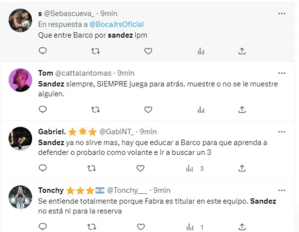Algunos hinchas, no entienden como pedían al lateral izquierdo como titular en lugar de Frank Fabra, mientras que otros piden por Valentín Barco, el juvenil de la Reserva que desde hace tiempo pide pista en Primera División.