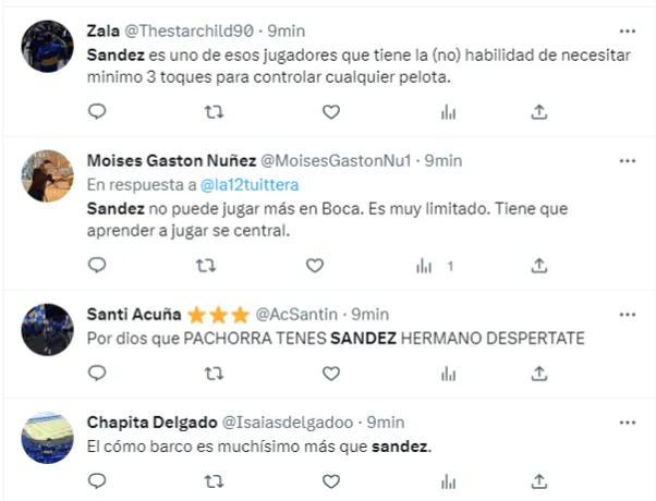 Luego de recibir el gol al primer minuto del partido, hecho por Ramón Ábila, los hinchas de Boca no perdonaron en las redes sociales a Agustín Sández, quien tuvo un error en el despeje, dejándole la pelota al delantero de Colón dentro del área, que definió para marcar la inexorable ley del ex.