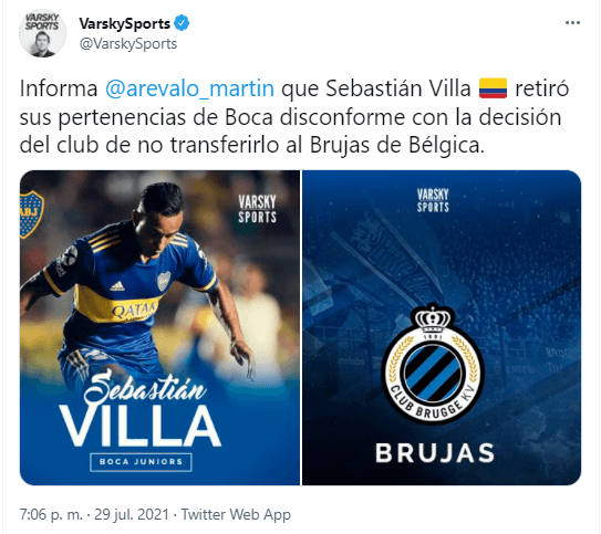 “Sebastian Villa tomó sus pertenencias, sus botines y se despidió del plantel. Quiere ser transferido a Europa”, aseguró el periodista en su cuenta de Twitter. ¿Habrá sido este su último entrenamiento con la camisetaazul y oro?