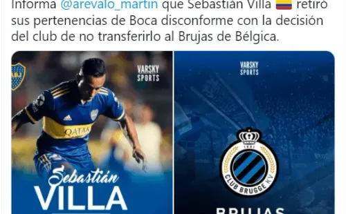 Son horas decisivas para el futuro de Sebastián Villa. El volante habría hablado con la dirigencia de Boca para pedir su traspaso al Brujas de Bélgica, equipo que en los últimos días habría hecho una oferta de casi 9 millones de euros por él.