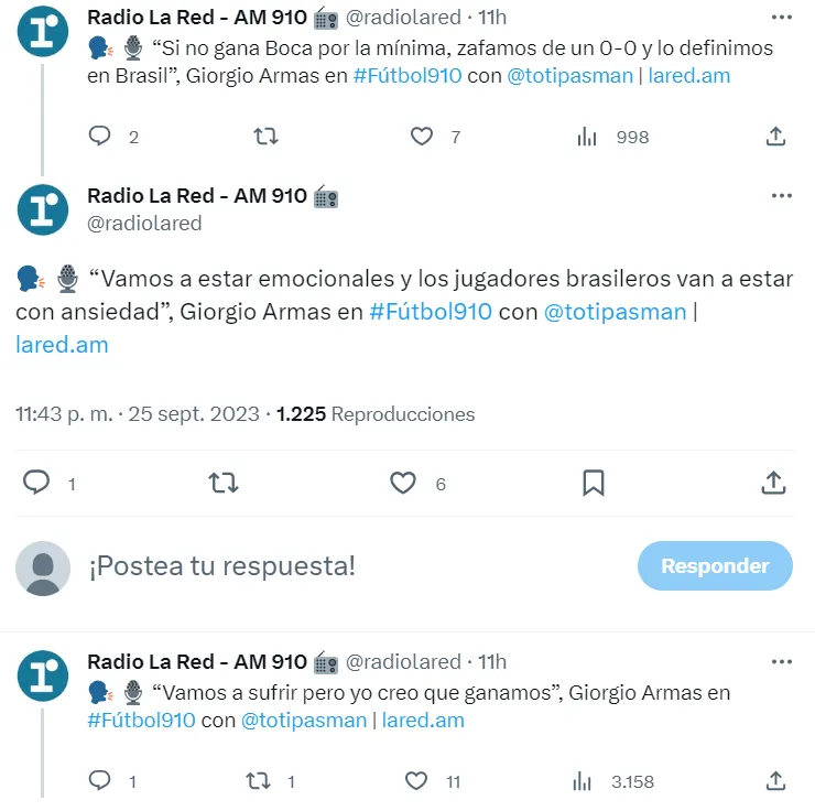 En cuanto al resultado del partido de ida, Armas fue claro: “Si no gana Boca por la mínima, zafamos de un 0-0 y lo definimos en Brasil. Vamos a estar emocionales y los jugadores brasileros van a estar con ansiedad”. Para cerrar, tiró: “Vamos a sufrir pero yo creo que ganamos”.