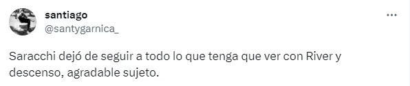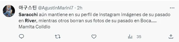 En la previa de lo que será su presentación oficial como jugador del Xeneize, Saracchi tuvo un gesto que enloqueció a los hinchas de Boca, ya que en su cuenta de Instagram comenzó a seguir a la cuenta oficial del club, y a su vez, dejó de seguir a los medios partidarios de River.