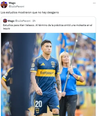 Se trata de Alan Velasco, que levantó su nivel y mejoró su imagen en la racha positiva de los de azul y oro. Según la información de Julio Pavoni, el volante ofensivo proveniente de FC Dallas terminó el entrenamiento con una molestia en el isquiotibial de la pierna derecha.