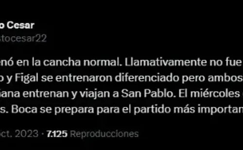 Respecto a otras novedades de la práctica xeneize, Marcos Rojo y Nicolás Figal estrenaron de manera diferenciada para evitar inconvenientes por las sobrecargas sufridas en la ida con Palmeiras, y por primera vez en el último mes y medio, Luca Langoni se entrenó a la par de sus compañeros, pero aún no tiene fecha de regreso a las canchas.
