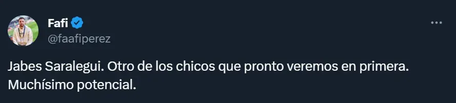 Después de lo que fue la gran actuación de Saralegui, el periodista Facundo Pérez aseguró en sus redes sociales que es “otro de los chicos que pronto veremos en Primera”. Y añadió: “Muchísimo potencial”. Claramente, el DT de Boca lo tiene entre sus planes.