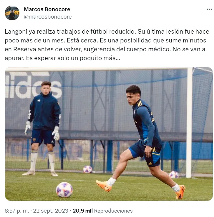 Según informó TyC Sports, Langoni tendrá un paso previo por Reserva antes de reaparecer en Primera División. El periodista Marcos Bonocore agregó que esto se debe a una “sugerencia del cuerpo médico”. La idea es que el goleador vuelva y pueda estar en la consideración de Almirón de una vez por todas.