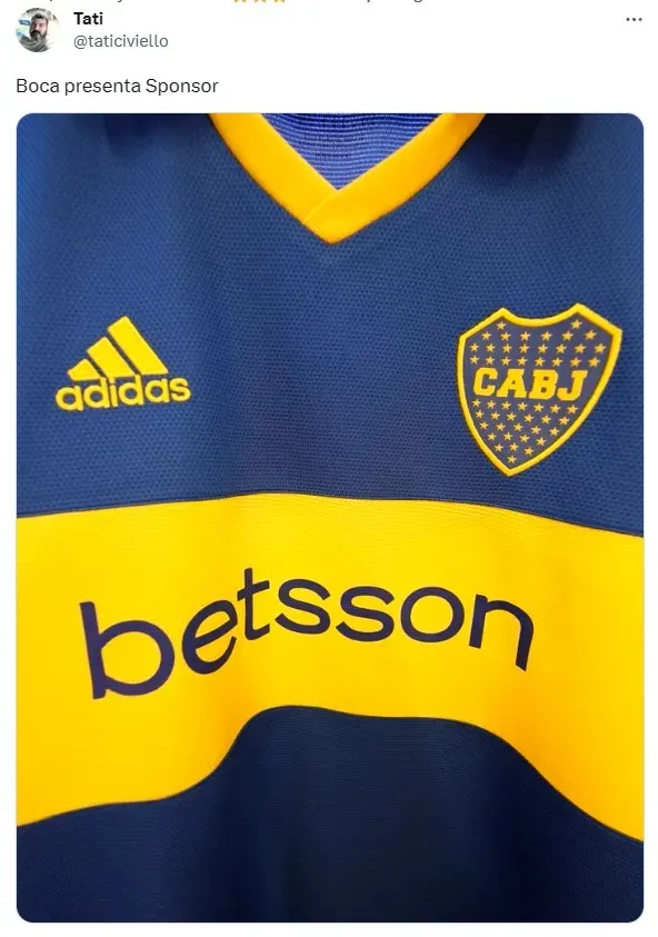 Es que, en las últimas horas, el club de La Ribera firmó todos los papeles para comenzar su alianza con Betsson, sitio de apuestas deportivas, que pondrá alrededor de 5 millones de dólares de forma anual para que el nombre de la marca aparezca en la franja amarilla de la casaca titular de Boca. En esta oportunidad, celebridades como Leo Montero y Nicolas Occhiato lucieron el modelo que se estrenará informalmente esta tarde.