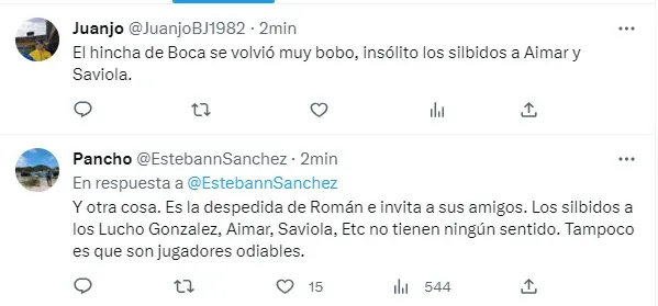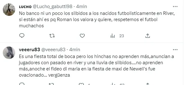 Rápidamente este accionar se hizo viral en las redes sociales, y los mismos hinchas repudiaron este gesto, debido a que fueron invitados por Riquelme, y además lo comparan con la ovación de los hinchas de Newell’s a Di María en la despedida de Maxi Rodríguez.