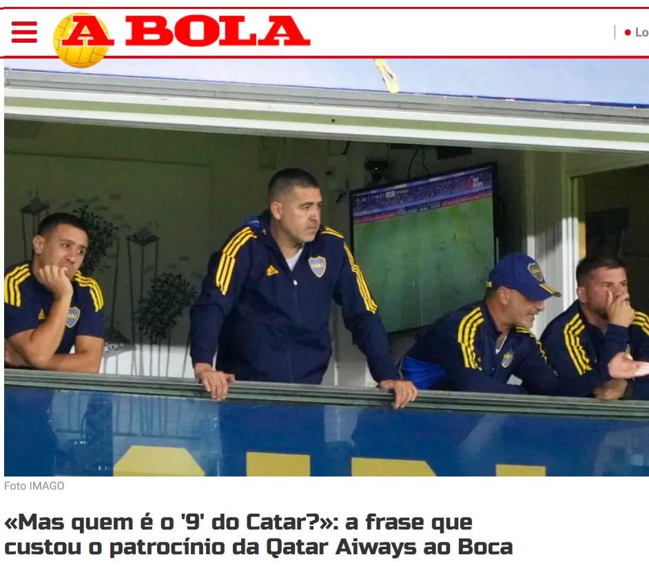 Por su parte, A Bola, principal medio deportivo de Portugal, le dedicó un extracto al caso de Almoez Alí que Riquelme sacó a la luz hace días y que el propio Macri confirmó recientemente en una conversación con TNT Sports. El artículo en sí lo tomó como un disparador para contar por qué Boca dejó de tener como sponsor en su camiseta a la aerolínea qatarí.