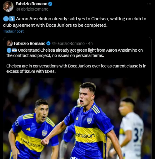 El club inglés ya arribó a Brandsen 805 con una oferta formal de 18 millones de euros más objetivos y se ultiman detalles para concretar una venta que entraría en las más altas en la historia xeneize, ya que incluso el periodista Germán García Grova confirmó un principio de acuerdo entre los clubes. En este contexto, mientras definen los pormenores para dar con un traspaso idóneo, se conoció la postura del propio Aaron Anselmino al respecto y el encargado de revelarla fue el periodista Fabrizio Romano.