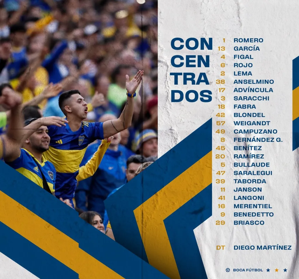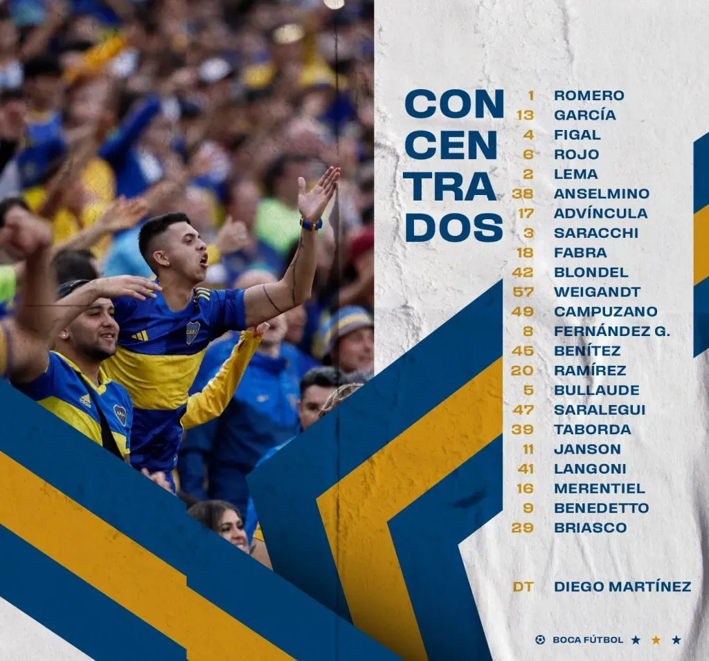 - DEFENSORES: Nicolás Figal, Marcos Rojo, Cristian Lema, Aaron Anselmino, Luis Advíncula, Marcelo Saracchi, Frank Fabra, Lucas Blondel y Marcelo Weigandt.