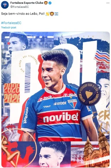 “Bienvenido al León, Pol“, informó Fortaleza en sus redes sociales oficiales junto a un poster del jugador vistiendo la camiseta ‘Tricolor’. Luego de este posteo, el club brasileño publicó un video en donde el mediocampista argentino dejó sus primeras palabras.