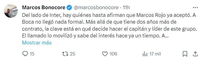 Si bien se trata de una oferta tentadora, Rojo no se expresó públicamente sobre el tema y puertas adentro confían en que se quede. De hecho, en los últimos días hubo varios posteos del capitán expresando lo cómodo que está en Boca. A esar atentos…