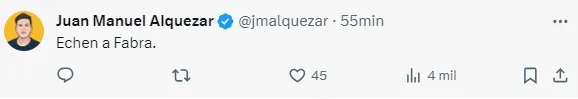 Los comentarios de los hinchas pidiendo por la salida de Fabra