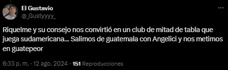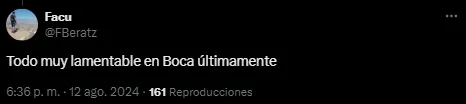 Al conocer que no formará parte del equipo ante Cruzeiro, decenas de hinchas de Boca criticaron su ausencia en redes sociales. “Club olvidado por Dios“, resumió uno de ellos. Otro, en cambio, prefirió el sarcasmo: “Maravillosa gestión, eh“. “El único central decente que tenia el club y no lo podemos utilizar, en cambio está el retirado de Medel jajajaja. Por dios que tortura“, lanzó un tercero.