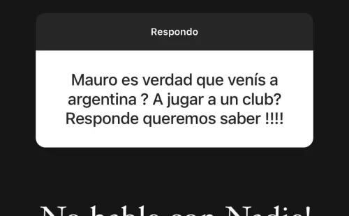 Respondiendo preguntas de sus seguidores en su cuenta de Instagram, a Mauro le consultaron qué había de cierto de todo lo que se hablaba del Xeneize. Su respuesta, contundente: “No hablé con nadie. Falso“.