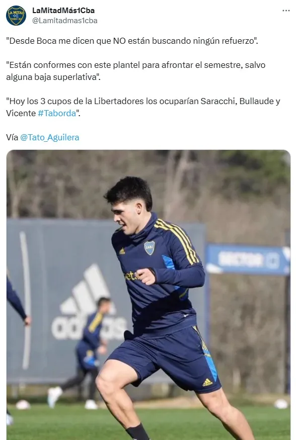 Es así que, según informó este domingo Tato Aguilera, Boca ya se habría bajado definitivamente del mercado de pases invernal en el fútbol argentino. El periodista de TyC Sports agrega que “hay conformidad” puertas para adentro con la nómina que tiene Almirón a disposición y no habría grandes sorpresas para los cuartos de final de la Libertadores.