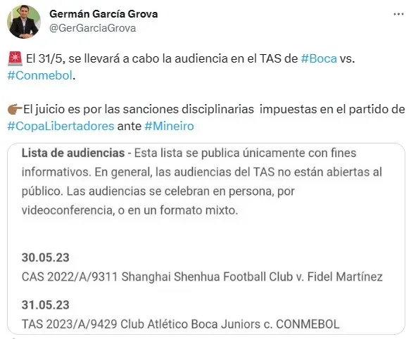 No obstante, la peor parte se la llevaron Raúl Cascini y Marcelo Delgado, integrantes del Consejo de Fútbol, con una prohibición de 24 meses para poder asistir a los partidos de Boca en la Libertadores. Por ese motivo y más, el Xeneize tendrá una audiencia con el TAS a llevarse a cabo el próximo miércoles 31 de mayo.