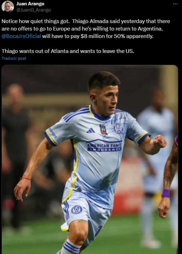 Entre las prioridades de Boca como próximos refuerzos se encuentra el sueño de repatriar a Thiago Almada. El surgido de Vélez Sarsfield desea salir de Atlanta United y, aunque tiene ganas de jugar en Europa, no descarta la posibilidad de jugar con la camiseta del Xeneize en este 2024.