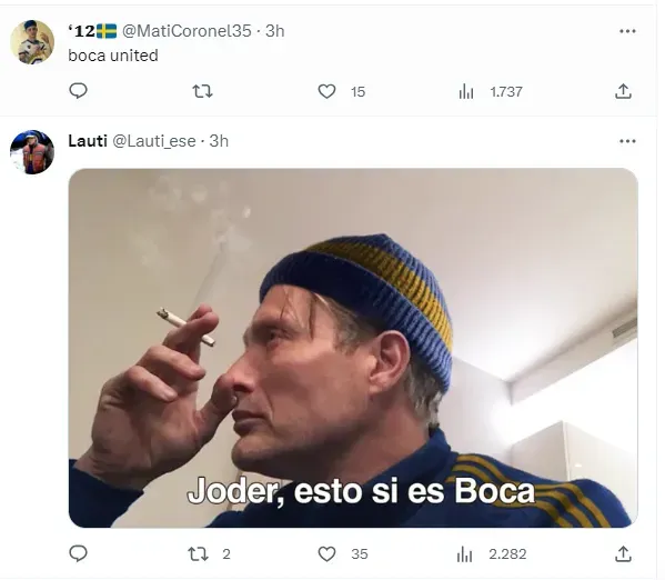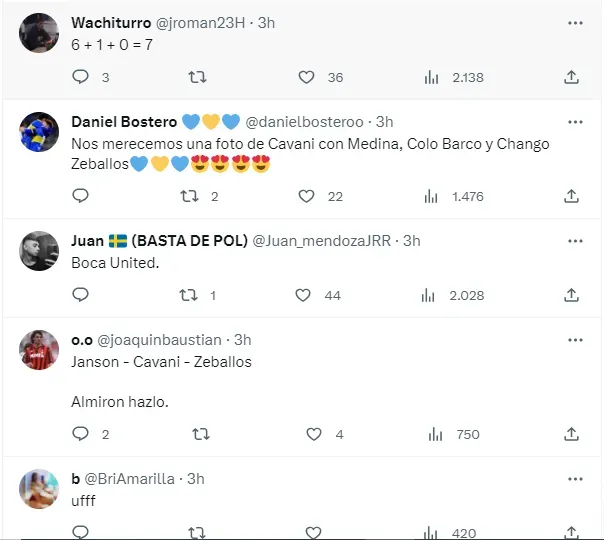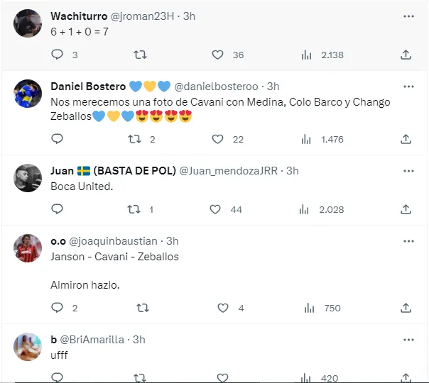 Rápidamente, en las redes sociales los fanáticos hicieron eco de esta publicación, mostrando sus ganas de ver el debut de Cavani. “Boca United”, “Joder, esto si es Boca”, “Club Atlético Bocanchester United”, fueron algunos de los tantos comentarios.
