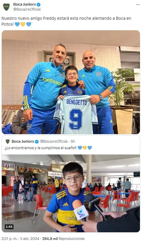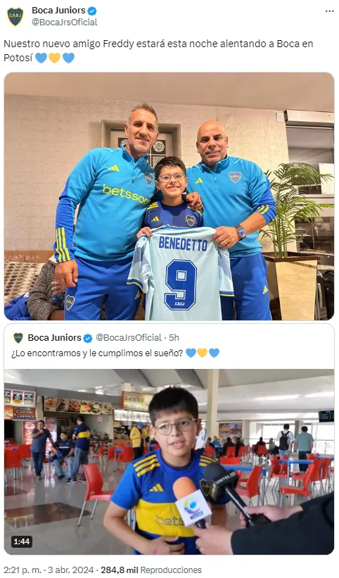 Pero uno de esos hinchas destacó por un video viral. Se trata de Freddy, un chico de 10 años que se declaró hincha de Boca y que contó que por motivos económicos no podría ir a Potosí a ver el encuentro por el inicio de la Sudamericana. Aún así, estaba dispuesto a usar sus ahorros para intentar ir.