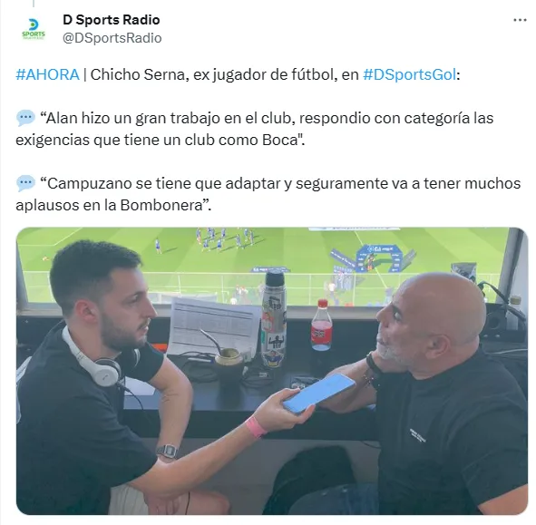 A raíz de las críticas que existen para el ex Atlético Nacional, quien salió a hablar en su defensa fue el mismísimo Chicho Serna, integrante del Consejo de Fútbol de Boca. En diálogo con DSports Gol, el dirigente aseguró que “Campuzano se tiene que adaptar” en su regreso a la institución y anticipó un buen futuro para su compatriota.
