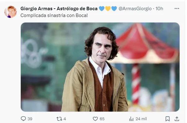 “Complicada sinastría con Boca!”, tiró junto a una foto de Joaquin Phoenix en la película El Joker, debido al parecido del actor con el flamante entrenador del Xeneize. Sin mediar más palabras, el astrólogo dio a entender que el paso del DT por el club no será el mejor, ya que no están bien conectados.
