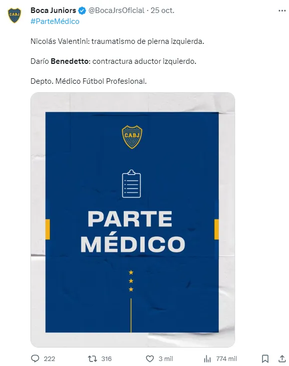 Para Boca, el partido ante Estudiantes del próximo sábado no será uno más. El Xeneize tendrá su última presentación antes de partir rumbo a Brasil para jugar la final de la CONMEBOL Libertadores y, si bien habrá una importante carga emotiva por despedirse en La Bombonera, el temor por alguna lesión también será protagonista.
