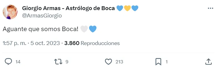 “Mejores opciones partido de vuelta colores: opción 1 todo de blanco (la mejor) y 2 con blanco en la indumentaria azul”, había escrito el usuario @lodicelaluna. Giorgio Armas, reconocido astrólogo del Xeneize, también hizo ese pedido: “El detalle es que la CONMEBOL no permite hermanito, estoy viendo la forma que Boca pueda pagar la multa”. ¿Saldrá bien?