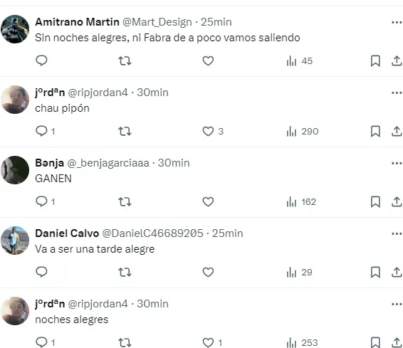 Rápidamente, los hinchas del elenco de la Ribera hicieron eco de esta decisión del entrenador y salieron a apoyarlo en las redes sociales, ya que no les gustó el accionar de Benedetto, ya que cuando Martínez le preguntó por qué estaba en kinesiología le respondió con una frase que lo hizo enojar.