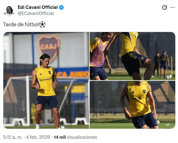 A más de dos meses de su último partido oficial, Edinson Cavani parece tener todo listo para volver a jugar con la camiseta de Boca. El uruguayo quiere estar el domingo en el Estadio José Amalfitani para enfrentar a Vélez, en el marco de la fecha 4 del Torneo Apertura 2026.