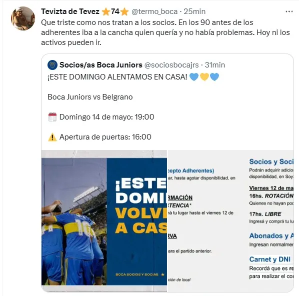 “Jueves 11 de mayo – confirmación. Prioridad por asistencia a 17 de los últimos 22 partidos de local”, anunció Boca este jueves en las primeras horas de la mañana a través de su departamento de Departamento de Socios y Socias. Como consecuencia del enojo por un nuevo filtro para los abonados, el hincha reaccionó mal.