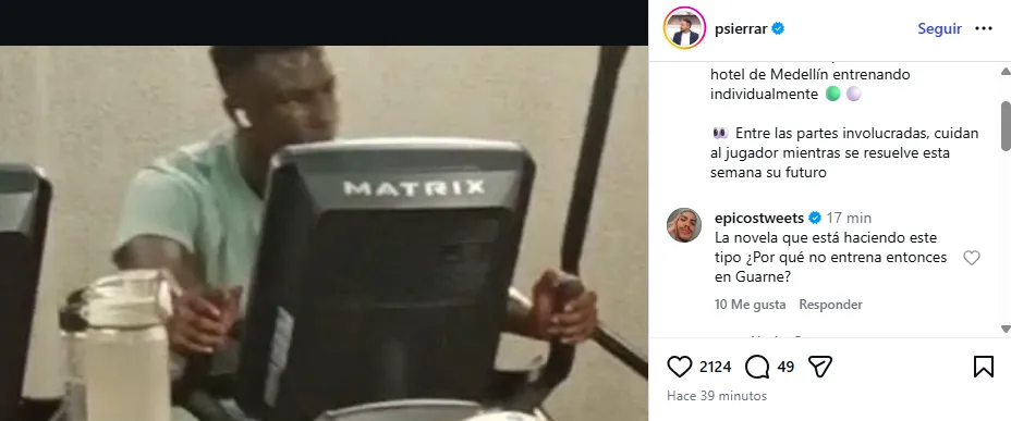 - El periodista Pipe Sierra informó que el jugador entrenaba individualmente en un hotel de Medellín.
