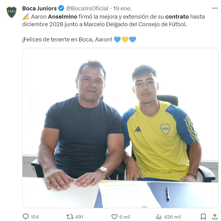 En enero de 2024, Boca hizo oficial la renovación de Aaron Anselmino, que era una de las prioridades en el inicio de año. El vínculo se extendió hasta diciembre de 2028, con una cláusula millonaria de 20 millones de euros. Un jugador clave para el futuro del club de la Ribera.