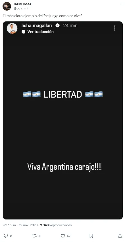 En esta oportunidad, quien se pronunció sin miedo a las críticas fue Lisandro Magallán. El exdefensor de Boca, hoy integrante del plantel de Pumas UNAM en la Liga MX, publicó una eufórica historia en Instagram para mostrar su felicitad tras conocerse los resultados del balotaje.