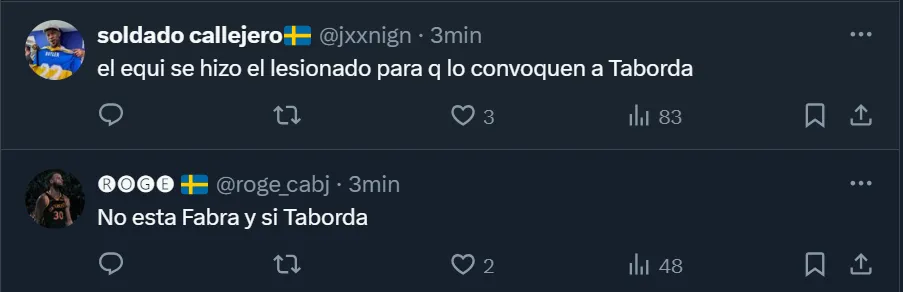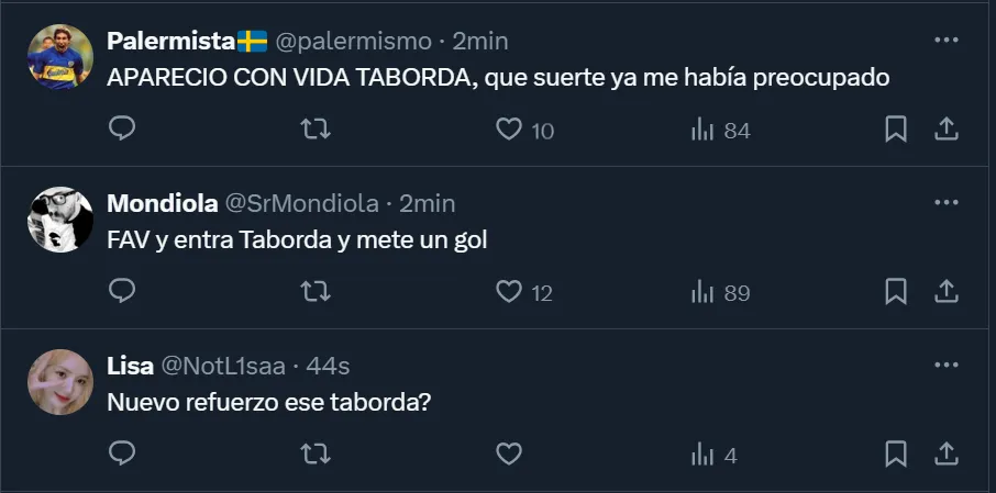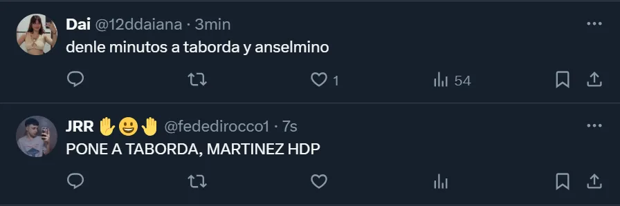 Taborda, que decidió quedarse en la institución para ganar continuidad, todavía no sumó minutos y los hinchas, semana a semana, le recriminan a Martínez por la ausencia del zurdo de 22 años nacido en Gualeguay, provincia de Entre Ríos. Y ahora que retornó a la nómina, la fanaticada xeneize solicitó que tenga rodaje.