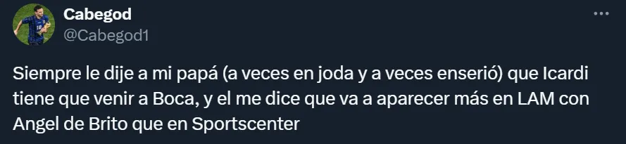 A raíz de esta declaración del futbolista que hizo inferiores en FC Barcelona y también pasó por Sampdoria, los hinchas de Boca se expresaron en las redes sociales, donde comentaron todas las publicaciones posibles que se referían al tema, y pidieron por el arribo de Mauro Icardi a Brandsen 805. ¿Se dará en algún momento?