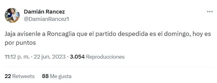 “Avísenle que el partido despedida es el domingo”, “ex-jugador”, “papelón”, “siempre llega tarde”, fueron solo algunas de las tantas críticas de los hinchas para el defensor. Pasaron varias horas y sigue siendo tendencia en Twitter…