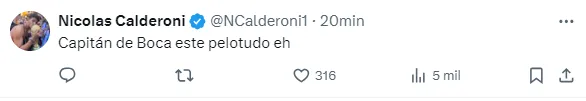 Este accionar del mediocampista generó el enojo de los hinchas de Boca en las redes sociales, ya que la relación entre ambos está tensa porque el jugador afirmó en los últimos días que no renovará su vínculo con la institución y se irá libre a Fortaleza de Brasil en 2025.