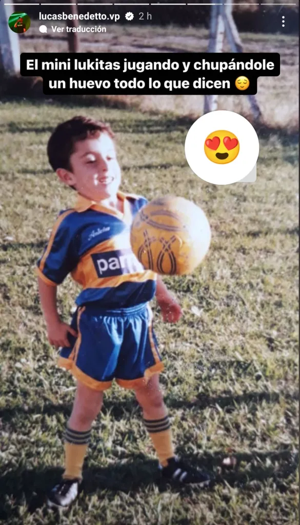 Junto con una imagen suya de chico con la camiseta de Boca y jugando con una pelota, Lucas Benedetto expresó: “El mini Lukitas jugando y chupándole un huevo todo lo que dicen“, siendo este un mensaje para aquellos que realizaron críticas en las últimas horas.
