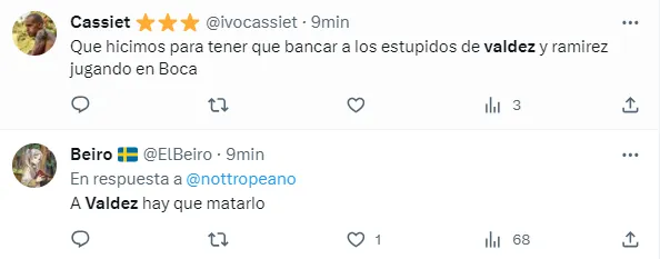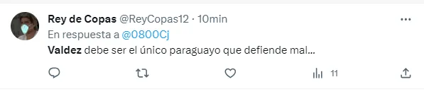 “Es doloroso para el hincha de Boca ver un partido en el que juega Valdez”, “Quiero adoptar un perrito y ponerle Bruno, por Valdez obvio”, “Valdez debe ser el único paraguayo que defiende mal”, fueron algunas de las tantas críticas al defensor central paraguayo.