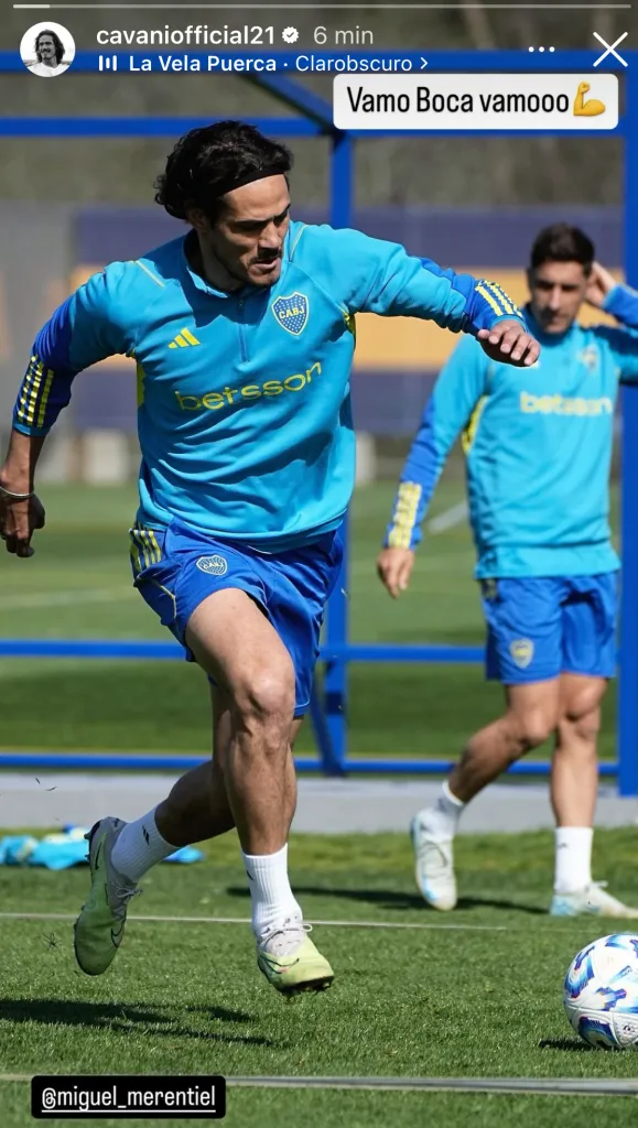 “Vamo Boca vamoo”, compartió el Matador en sus redes oficiales, en una imagen donde se lo ve entrenando con normalidad y con Miguel Merentiel de fondo. El uruguayo está metido en lo que viene y quiere ser titular el próximo sábado ante el Pirata.