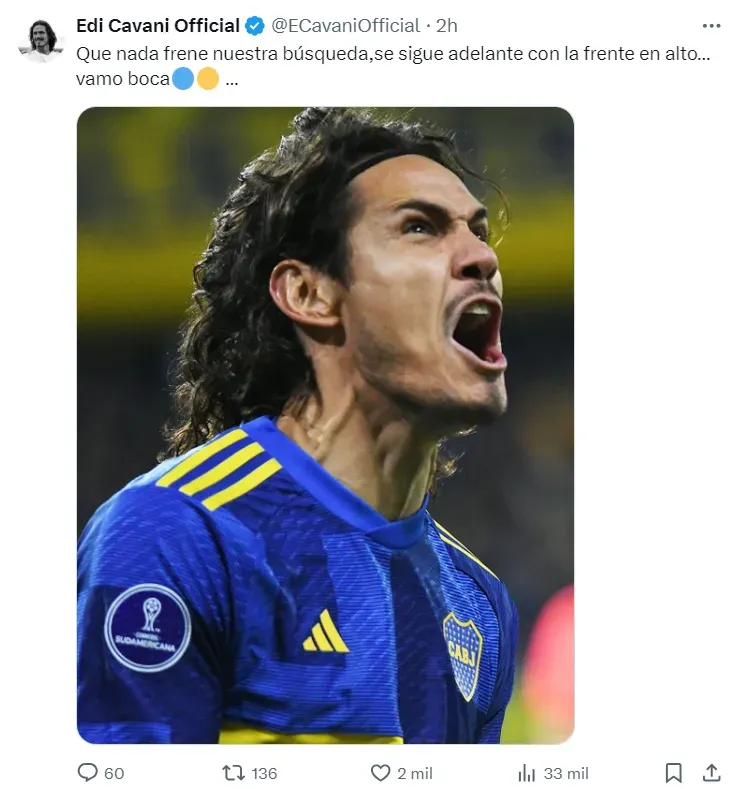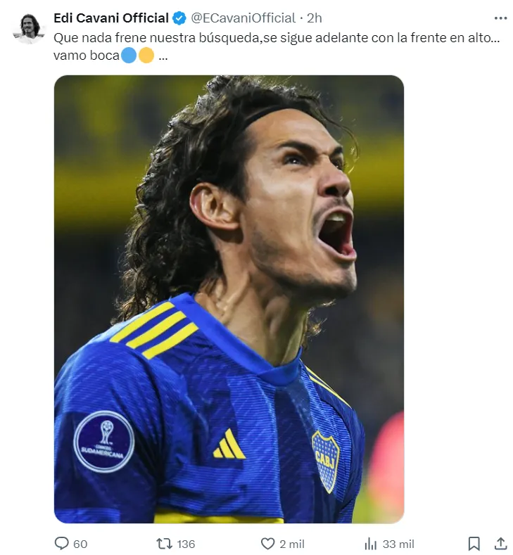 “Que nada frene nuestra búsqueda. Se sigue adelante con la frente en alto… Vamo Boca”, escribió el ex-Manchester United, bancando a sus compañeros y el ciclo que comenzó este año de la mano del entrenador.