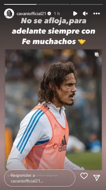 En su cuenta de Instagram, Cavani posteó una historia con una foto suya del partido ante Lanús y allí escribió: “No se afloja, para adelante siempre con fe muchachos“, hablando tanto para sus compañeros como para todo Boca.